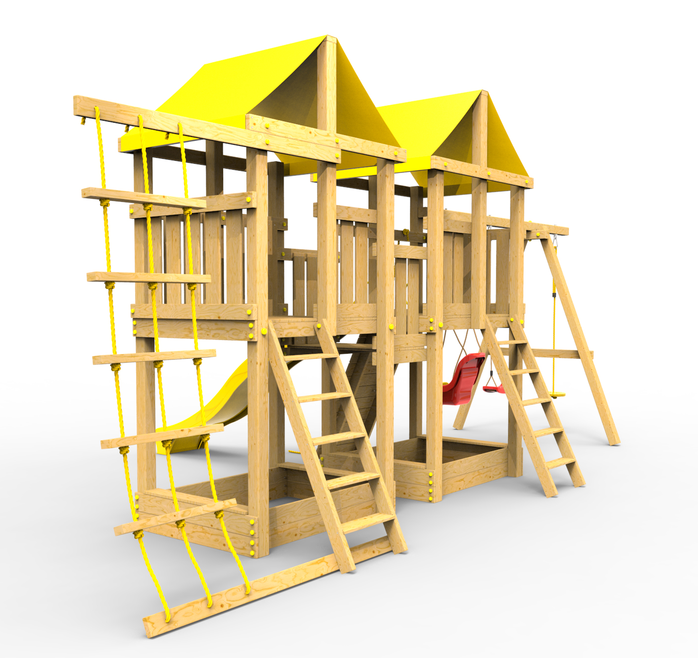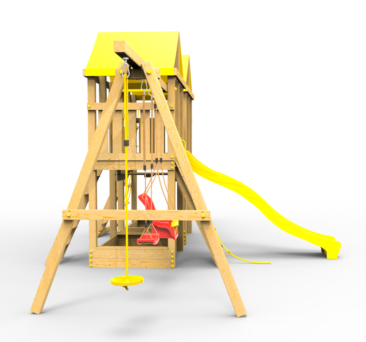-опоры игрового домика изготовлены из многослойного клееного соснового бруса толщиной 90мм с закругленными углами диаметр 20мм;